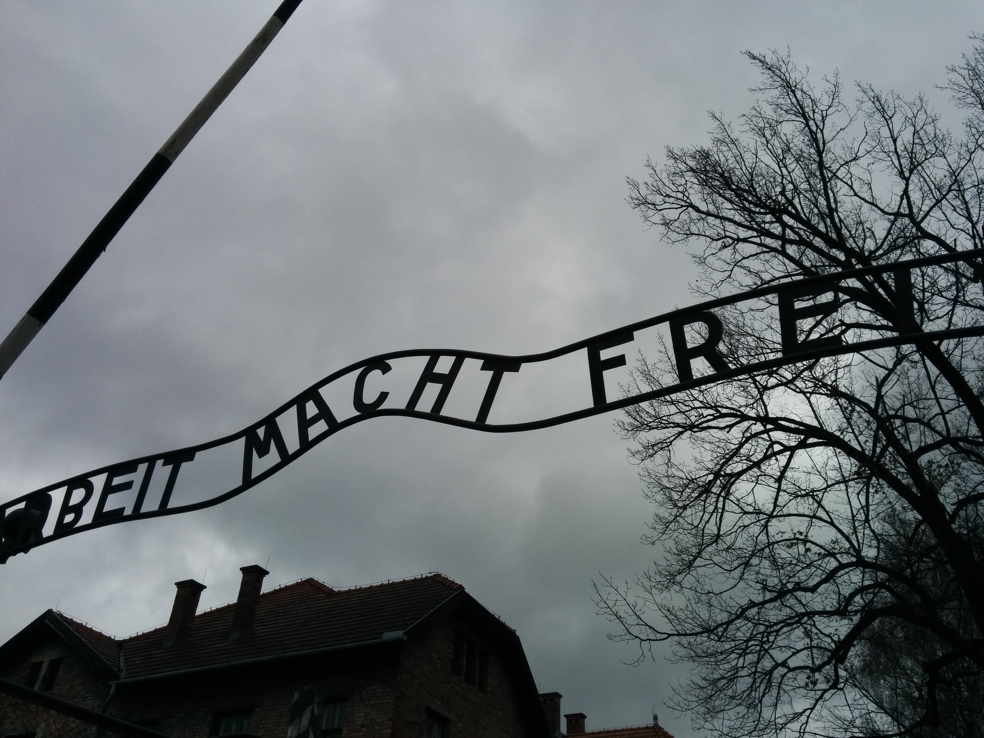 La visita empezaba en el campo I. Lo primero que pasas es la famosa verja de Arbeit macht frei y la doble alambrada. La visita a este campo se hace con un cacharro con cascos y una guía que te va hablando. Sobre todo se centra en el interior de los barracones, que lo han convertido en museo. Se ven muchas fotos del campo, de la llegada de los prisioneros, tatuajes que se les hicieron, objetos personales requisados y la que más impresiona, una vitrina del tamaño de una habitación llena de pelo humano. Al acabar con el museo se pasa al barracón donde se hacían los juicios y estaba la prisión en la prisión. Allí estaba prohibido hacer fotos, pero si ya era angosto estar en el campo, imaginad cómo serían las celdas.