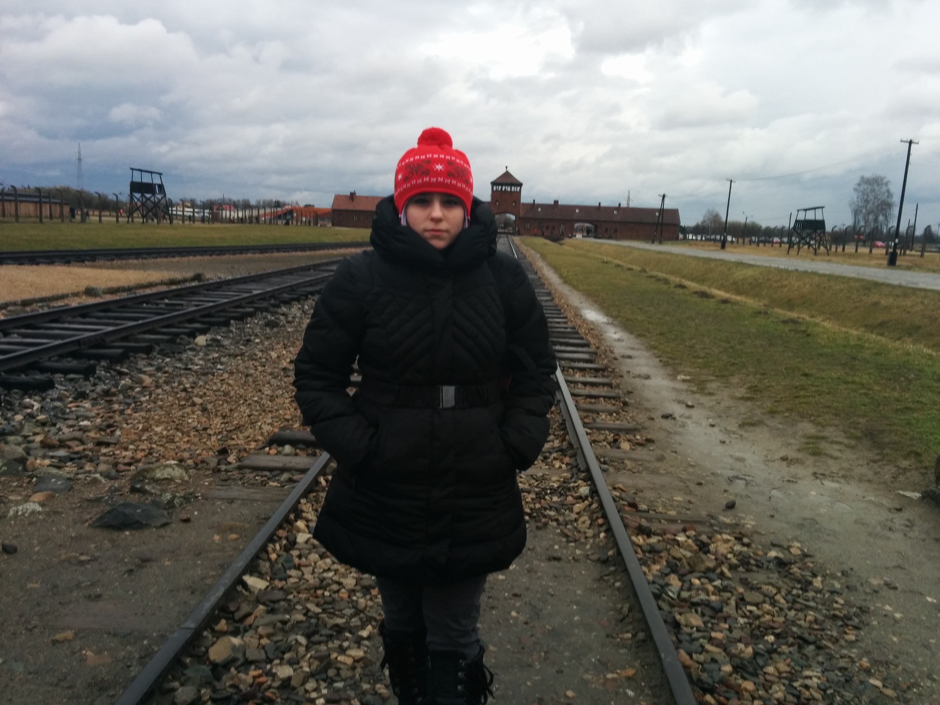Cuando nosotros llegamos con el coche nos confundimos y fuimos directos a Birkenau, encontrandonos de frente con la imagen de las vías del tren entrando en el campo. Es una imagen tan sobrecogedora (y más en un día nublado) que solo con verla ya sientes angustia. Y eso que nosotros vamos de visita…