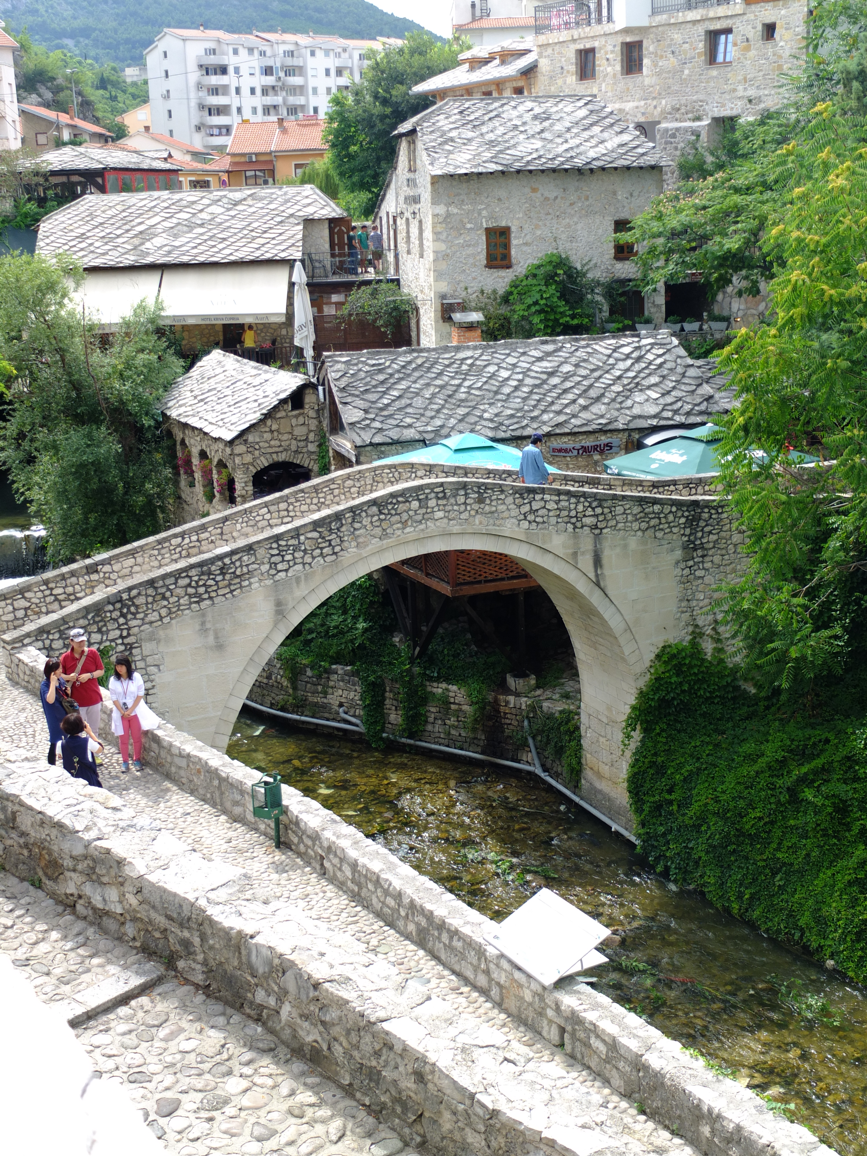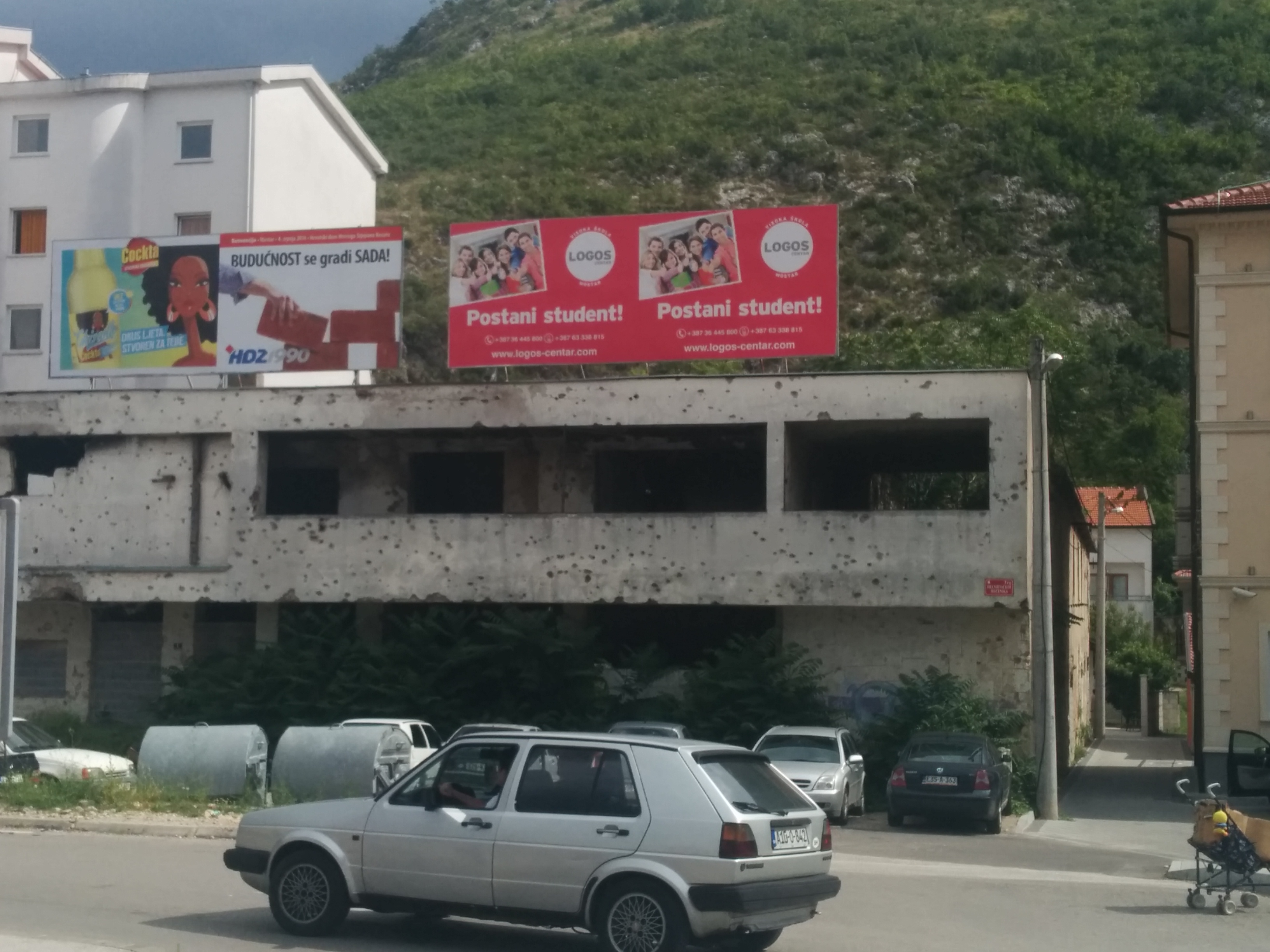 La estación de bus de Mostar está en el centro de la ciudad, haciendo que la primera impresión de la ciudad sea la de «dónde nos hemos metido?», ya que se van viendo un montón de edificios destruidos por la guerra y una miseria que no nos esperabamos. Sin embargo, está lejos de la realidad, es una ciudad que nos encantó. Al llegar, el dueño del hostal nos estaba esperando en la estación y nos acompañó hasta el hostal, nos dijo dónde teníamos que ir y se portó más como el anfitrión de la casa que como dueño de un hostal.