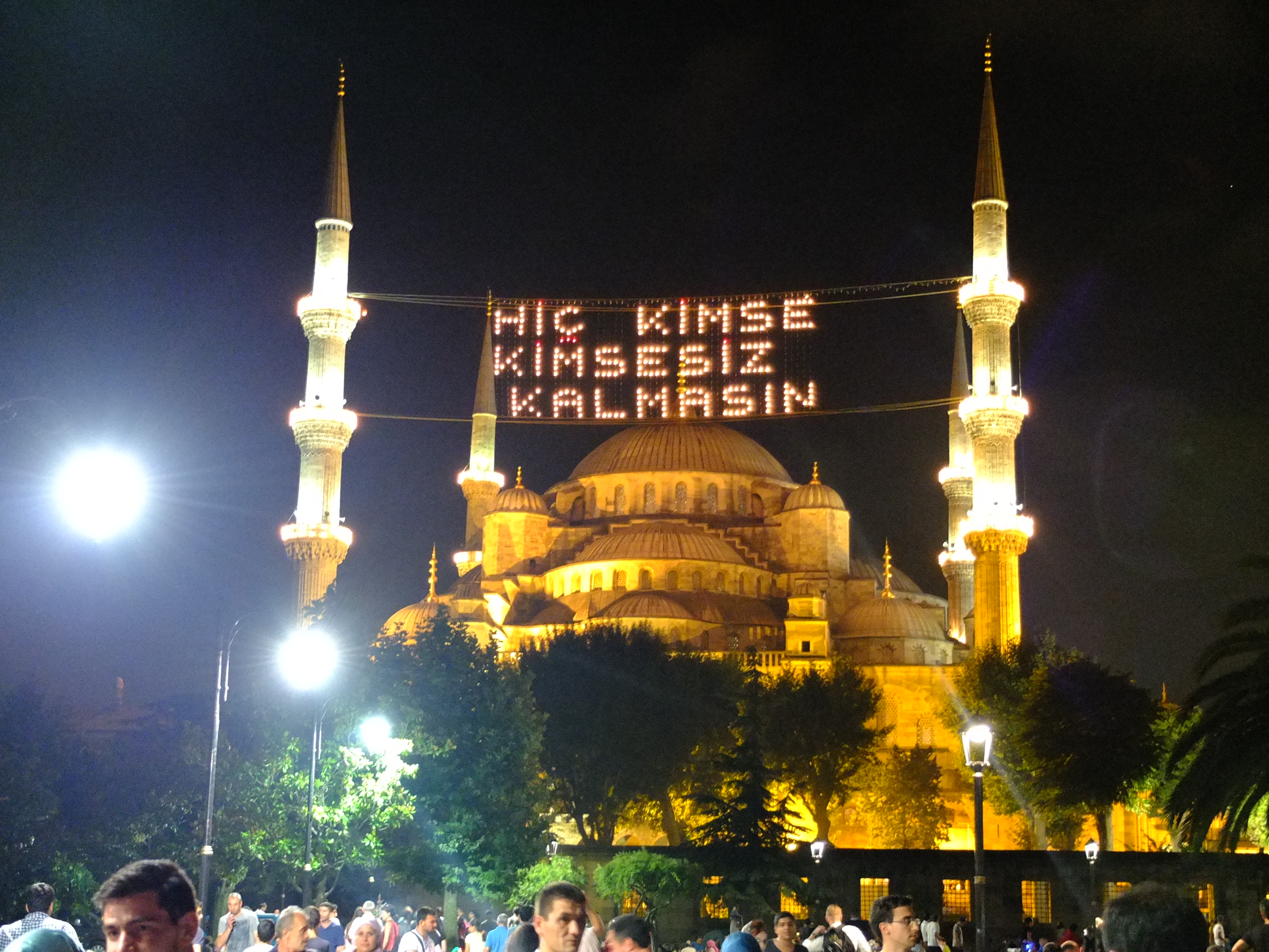 Al volver a la zona de Hagia Sophia ya está completamente abarrotada de gente. Es ramadán y está a punto de ser el último rezo, a partir del cual se permite comer. El ambiente es muy festivo, muchas familias comiendo entre las mezquitas, con puestos de comida, música… Un ambiente que te hace querer volver.