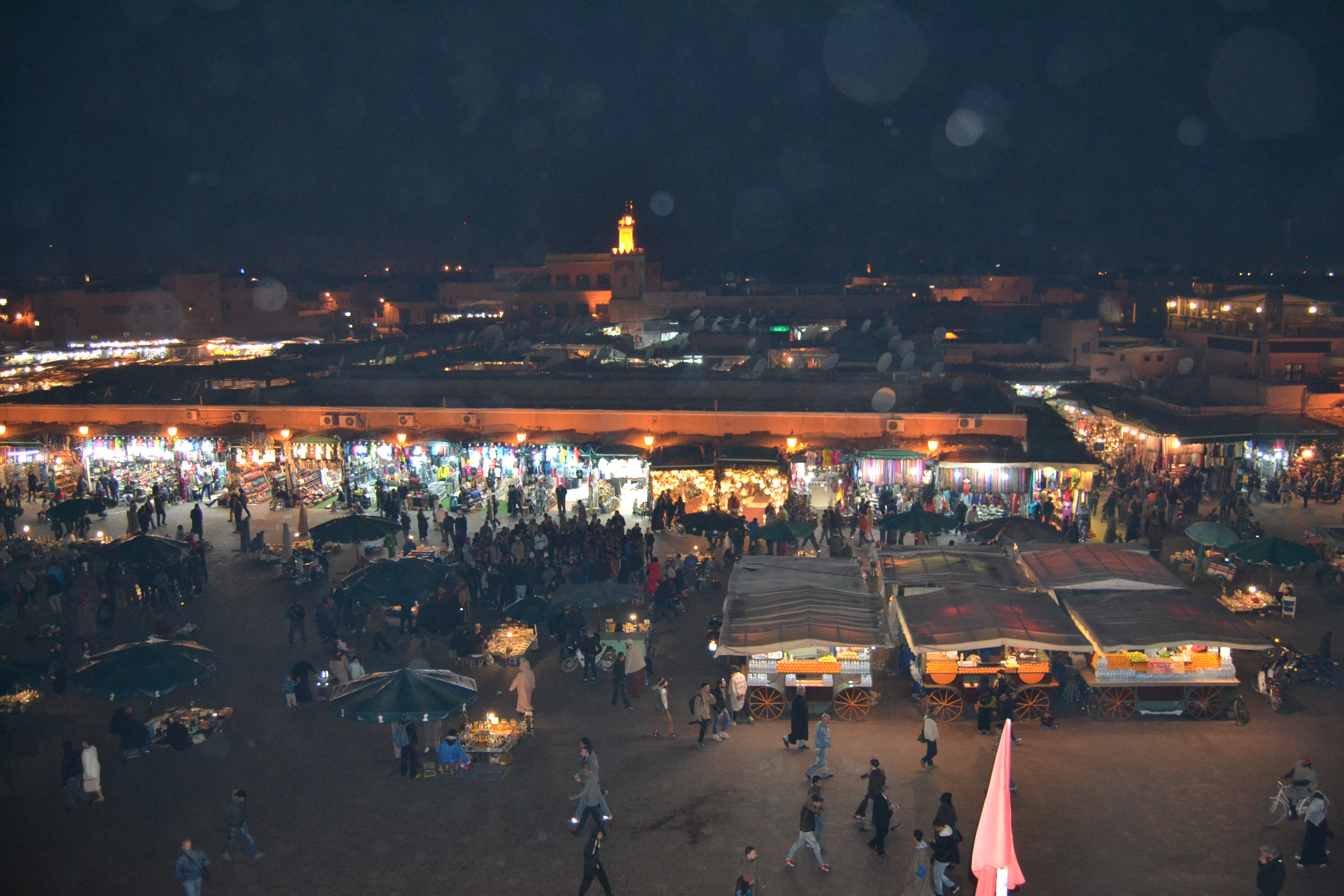 La plaza más famosa de Marrakech es todo un espectáculo. Depende de la hora a la que vayas habrá unos puestos u otros, pero siempre hay muchísima vida. Aquí también hay que tener cuidado con los que te intentan vender de todo. En mi caso, vino una mujer que hacia tatuajes de henna a ofrecermelo. Le dije que no varias veces y lo que hizo en cuanto me giré fue cogerme la mano y empezar a pintarmela. Y después con toda su jeta, pedía 40€ que obviamente no le di.
