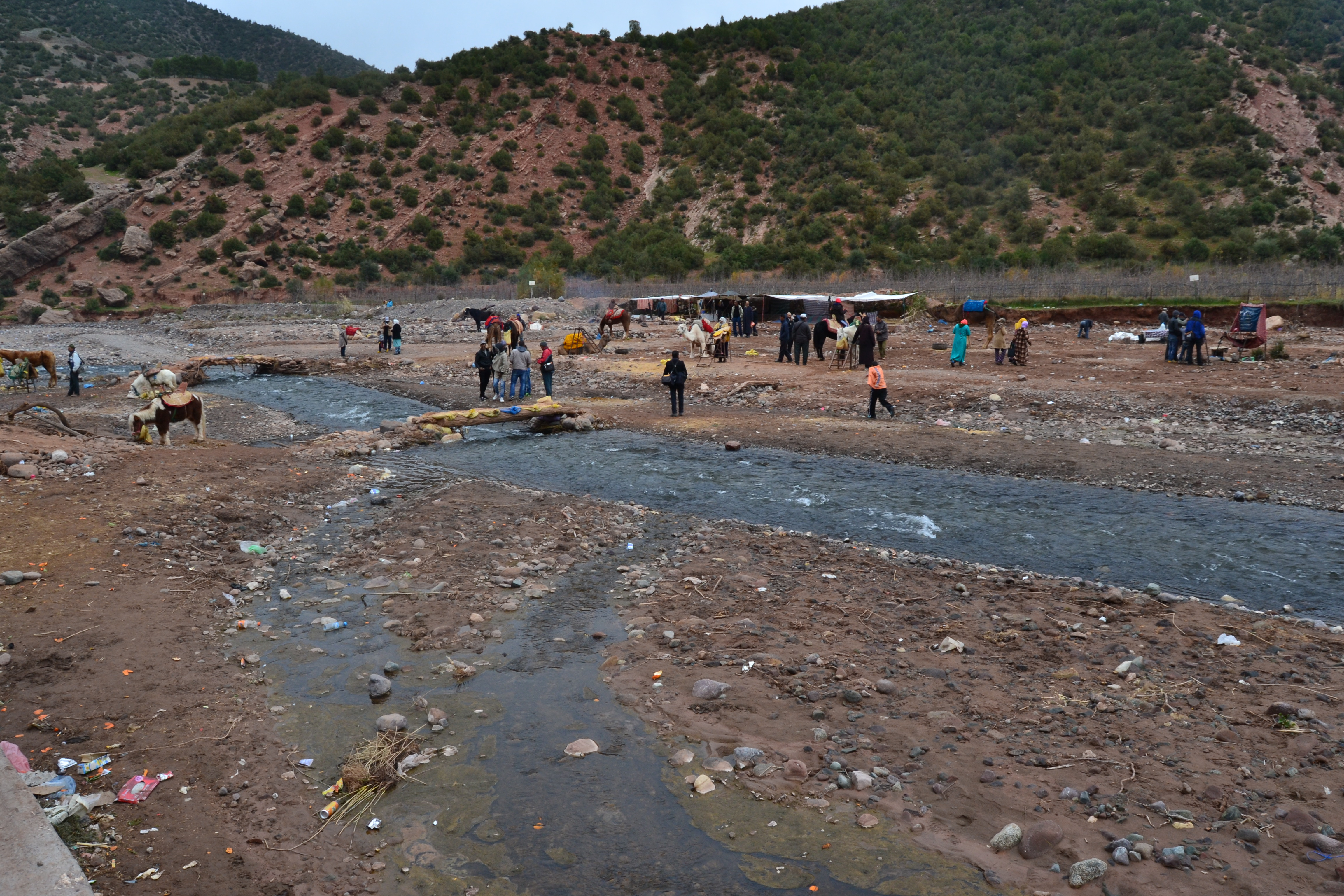 Antes de llegar a Ansí, en un paso del río, hay varios grupos bereber, con los camellos. Aprovechamos para tomar un té de menta, ya que mi hermano no se encuentra nada bien. Lo malo de la comida árabe especiada es que no eres consciente de si está en mal estado, cosa que le pasó al pobre.