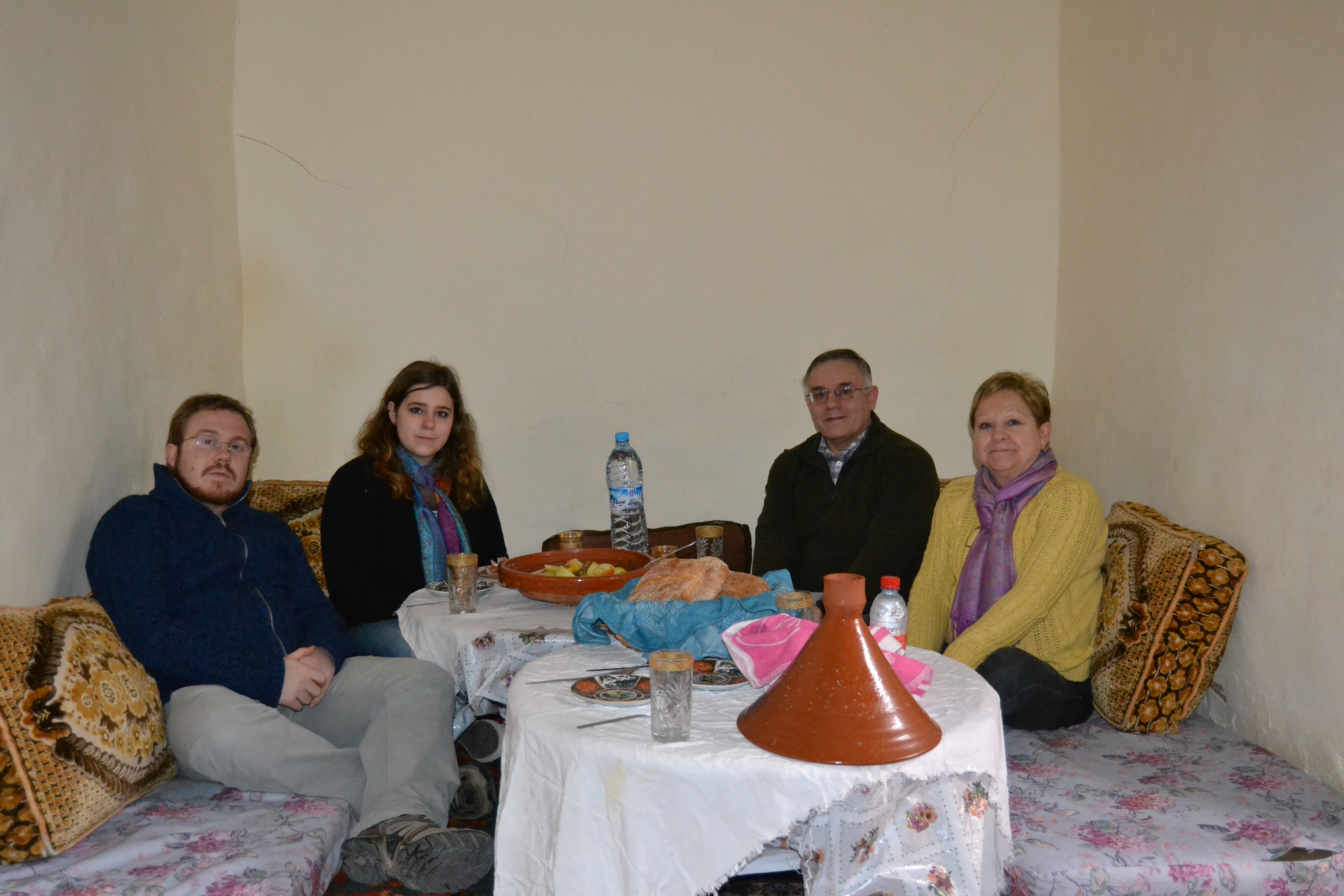 Tras la parada, seguimos hasta Imlil, un pueblo pequeñito en las faldas del Toubkal. Y de allí, a Ansí. Solo son 17km, pero tardamos más de media hora, porque ya no hay carretera asfaltada, sino un camino de tierra. Allí habíamos quedado con un amigo del dueño del riad, que nos lleva a comer a su casa. El pueblo es totalmente de documental. En las casas no hay ni agua, ni luz. Eso sí, con toda su hospitalidad nos saca tajin de pollo, té y pastas de almendra.