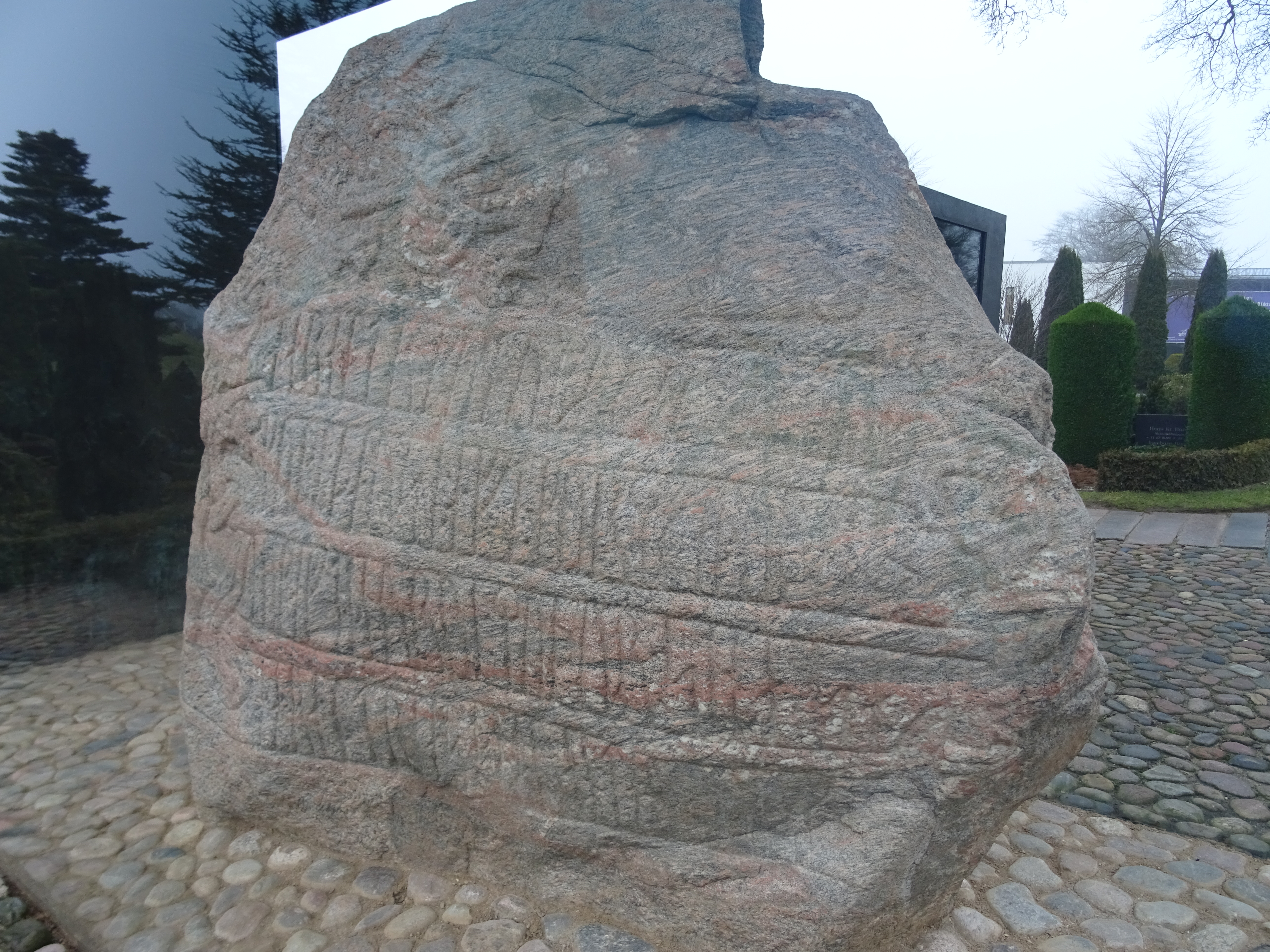 Pero el complejo que tienen allí no solo se basa en esas dos estelas, sino en la historia del rey Harald Blåtand, también conocido como Bluetooth. En el complejo de Jelling, aparte de una iglesia, también se han encontrado varios túmulos funerarios. No se sabe a ciencia cierta quién pudo estar enterrado allí, pero se cree que fueron los padres de este rey. Además, también se han encontrado los restos de un «barco de piedra«, una estela funeraria vikinga.