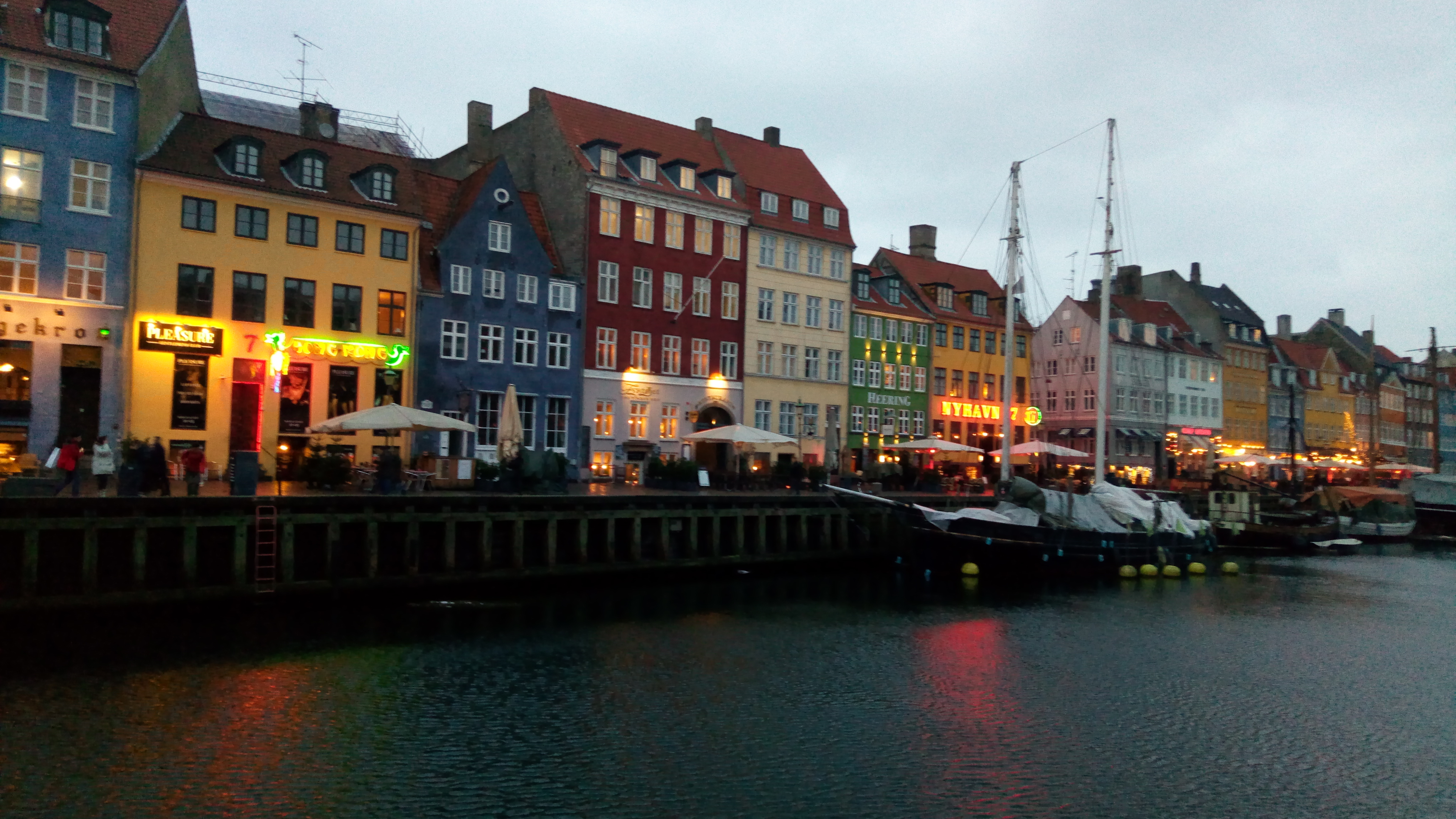 Entre el tiempo que perdimos en el aeropuerto esperando el equipaje e ir al centro, se había pasado medio día. Antes del atardecer nos dio tiempo a pasear un poquito por las calles peatonales del centro y llegar al canal de Nyhavn. Realmente, es tan bonito como en las fotos.