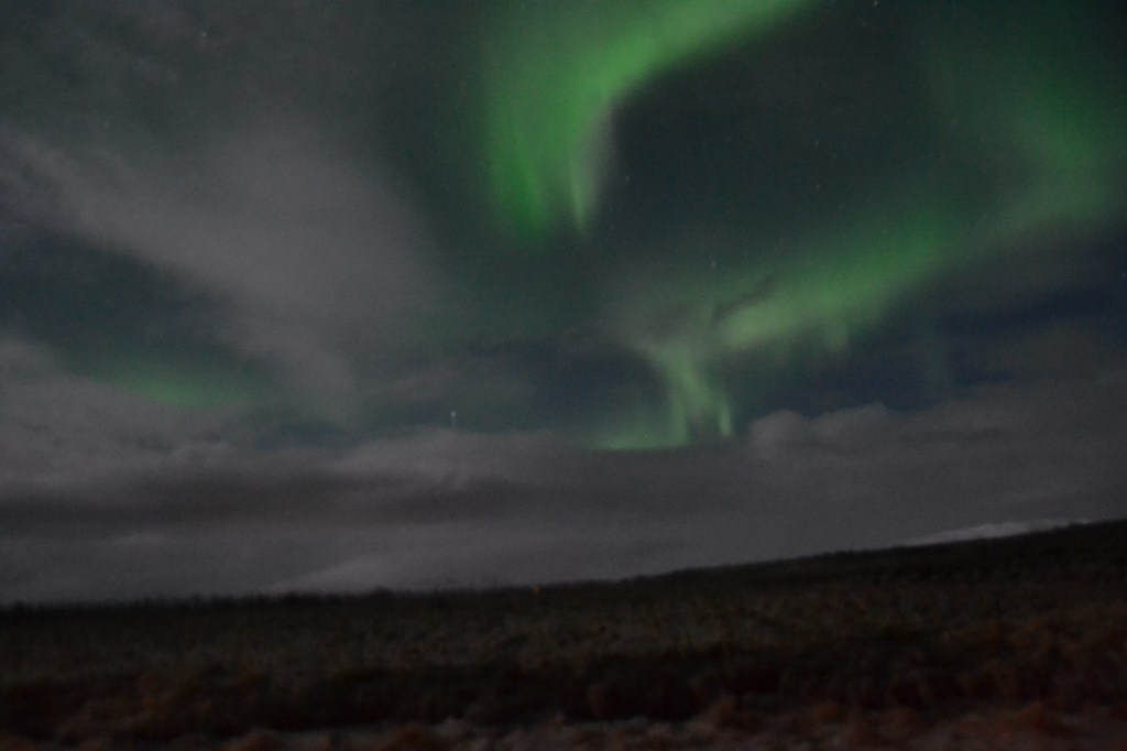 Y finalmente, ya sin buscar la aurora, tras un montón de rato y de dar vueltas con el coche, ahí estaba! Paramos el coche en el arcén (que a esas horas tráfico no había) y nos bajamos a disfrutar (e intentar fotografiar, aunque en 2017 no teníamos tantos medios para no profesionales). No fue la aurora más intensa, pero para nosotros fue chulísima.