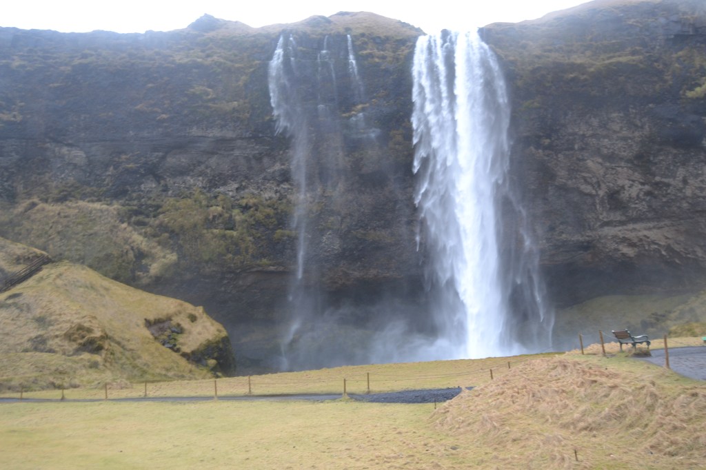 Al día siguiente, aunque cansados por haber dormido poco, nos dirigimos hacia el sur de la isla. Hace un tiempo malísimo, con muchísimo aire. El coche nos da muchísimos bandazos. Así visitamos (y nos mojamos) la cascada de Seljalandsfoss.