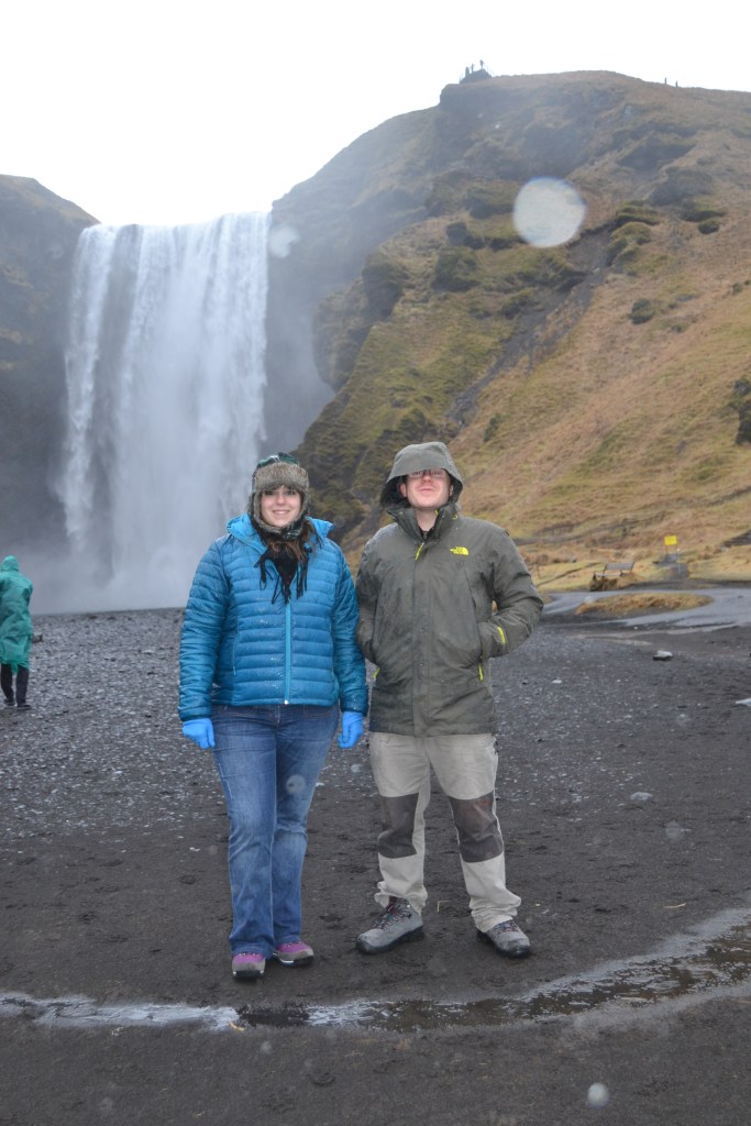 En el mismo volcán, está también la cascada Skogafoss. Hace tan malo que estamos allí 10 minutos y nos volvemos al coche a secarnos con la calefacción.