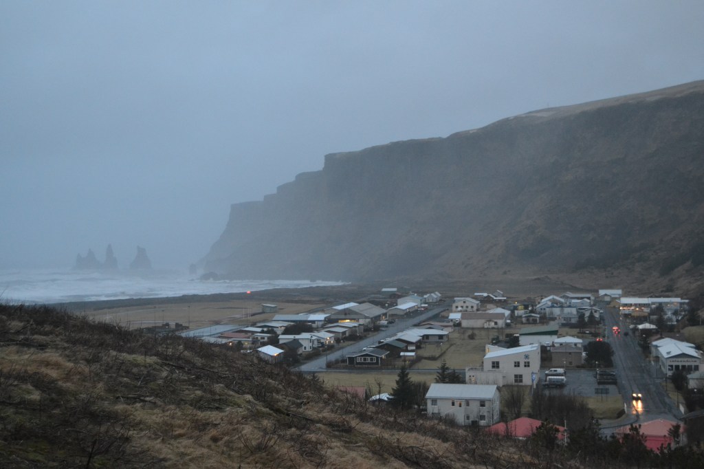 Conseguimos llegar hasta Vik, que tiene una iglesia en lo alto y unos acantilados preciosos, pero prácticamente no podemos ni bajarnos del coche con vientos de >100km/h…