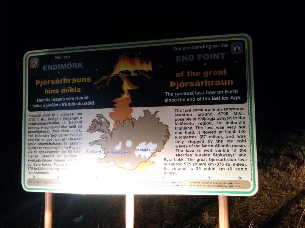 Para nuestra última noche (de aurora hunters, claro), nos fuimos hacia el norte de la isla. Elegimos una zona (más) volcánica donde la temperatura era de 10º. Y al menos, entre tanta «montaña» estábamos resguardados del viento. Auroras no vimos, pero nos lo pasamos como enanos en el coche hasta las 4 de la mañana que nos volvimos a casa a dormir.