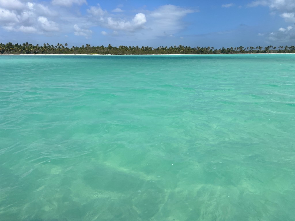 La primera excursión que hicimos fue a Isla Saona. Primero, nos recogieron en un minibus (que llegó tarde) para pasar a recoger a la gente por otros hoteles de Bayahibe e ir hasta el puerto. Allí, nos embarcaron junto a las señoras que llegaban tarde para recorrer unos 200m hasta el catamarán donde ya estaba toda la excursión haciendo snorkel. Entendemos que el paquete que te venden incluye snorkel, pero, ¿a 200m del puerto?