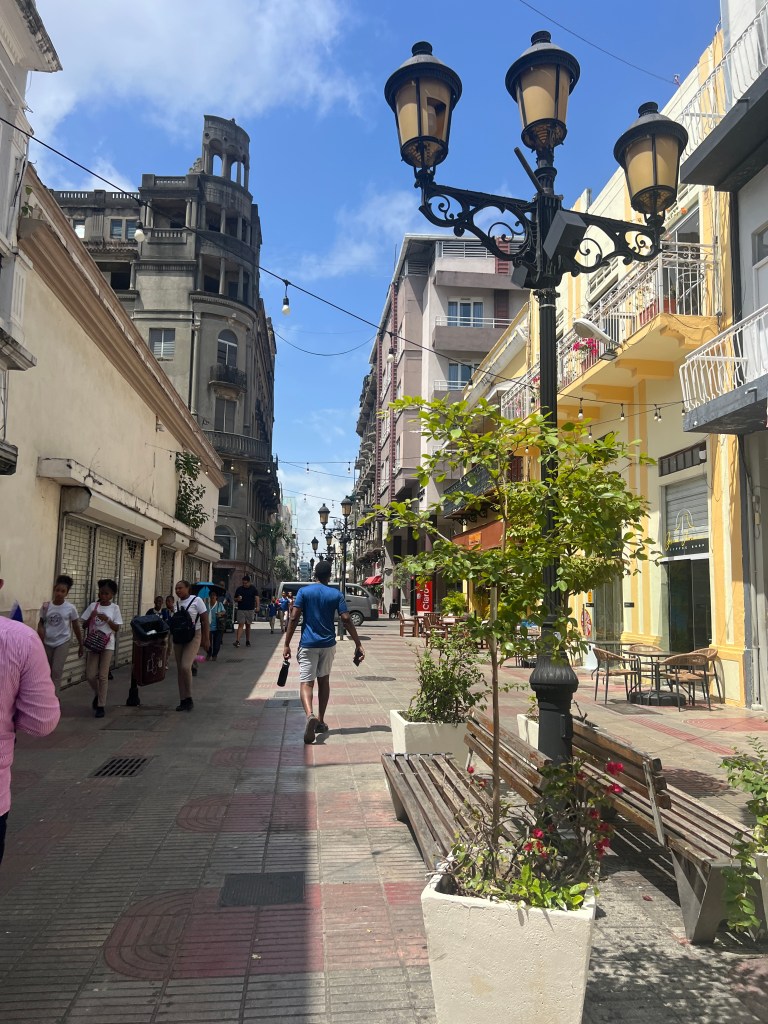 Al llegar a Santo Domingo nos llevaron directos a la zona colonial. Vimos un pequeño vídeo 4D sobre el asalto de Drake en 1586 muy chulo, la visita a la catedral con audioguía, el museo de las casas reales y nos dejaron algo de tiempo libre para comprar souvenirs. En esa zona, no sentimos inseguridad para nada, al revés, está todo lleno de policía turística (POLITUR). A nivel de precios, como cualquier zona turística, tiene los precios al mismo nivel que Europa e incluso más caros. Y como no tenemos pinta de hablar español así de primeras, que no saben si somos estadounidenses, alemanes o de dónde, pudimos escuchar el comentario «huele a visa» cuando pasamos por delante de un grupo de adolescentes…