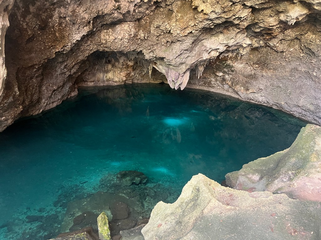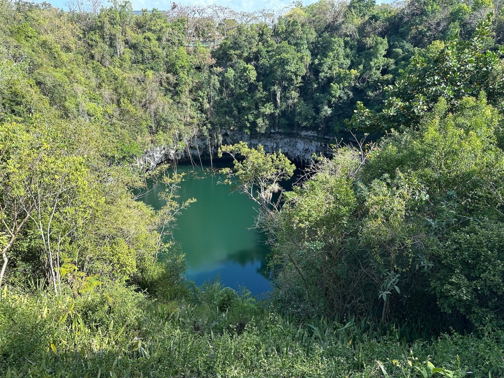 Y para terminar el día, quedó lo más chulo, la visita al parque de los 3 ojos. Su nombre viene por tres lagos subterráneos, que son cenotes igual que los que visitamos en México, donde no puedes bañarte, pero que destacan por bonitos. Hay que bajar alguna escalera (y luego subirlas, claro), pero merece muchísimo la pena. Es precioso.