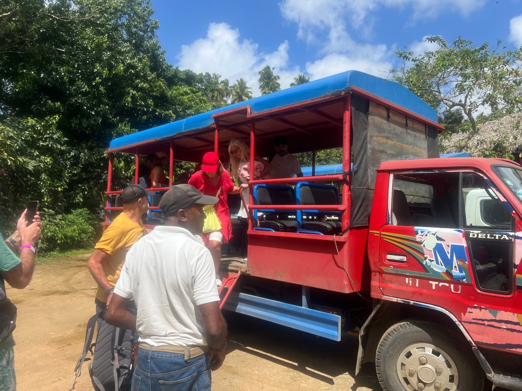 Al llegar al puerto, nos bajamos el barco y nos montaron en camiones abiertos otra media hora para llegar al inicio de la ruta de cascada limón.