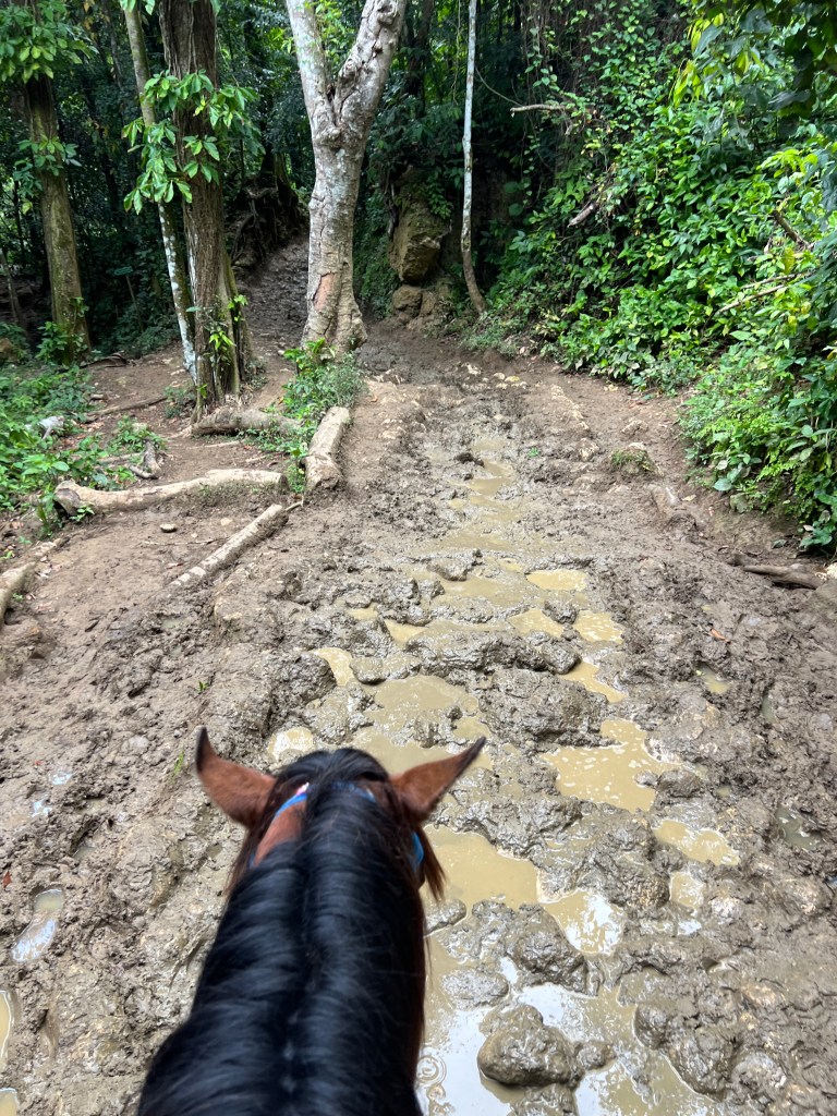 Esta ruta, se hace a caballo en unas condiciones que si llegamos a saber, no hubiéramos participado. Cada caballo lleva a su cuidador (y dueño) agarrándole con una cuerda, andando al lado del turista. Hasta ahí parece una actividad normal, el problema viene de que el terreno está muy mal cuidado, con muchísimo barro y zonas donde las piedras del camino no están bien para los pobres caballos. Dicen que solo permiten que cada caballo haga una ruta al día, que los cuidadores son voluntarios y que solo viven de las propinas que dejan los turistas. Habría que confirmar si esto es del todo cierto… No tengo fotos de las zonas que peor estaban porque iba más pendiente de no terminar en el suelo…